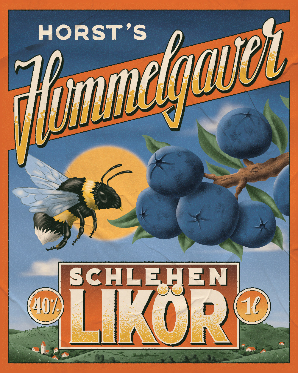 Label design for German Blackthorn liquor.